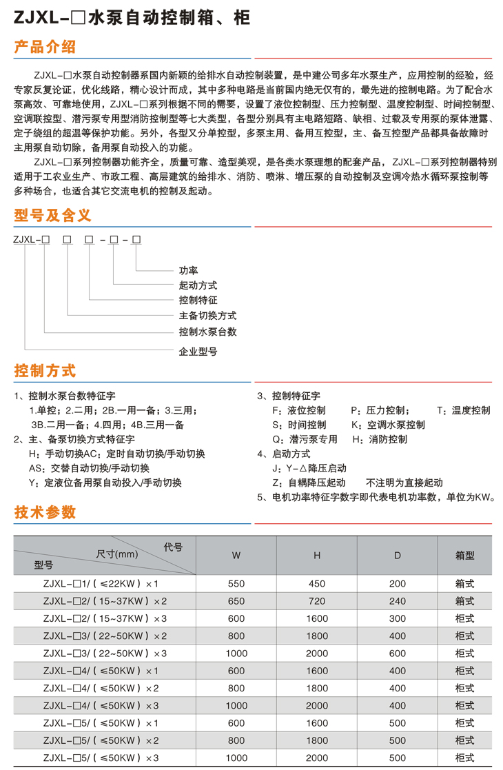 ZJXL-□水泵自動(dòng)控制箱、柜